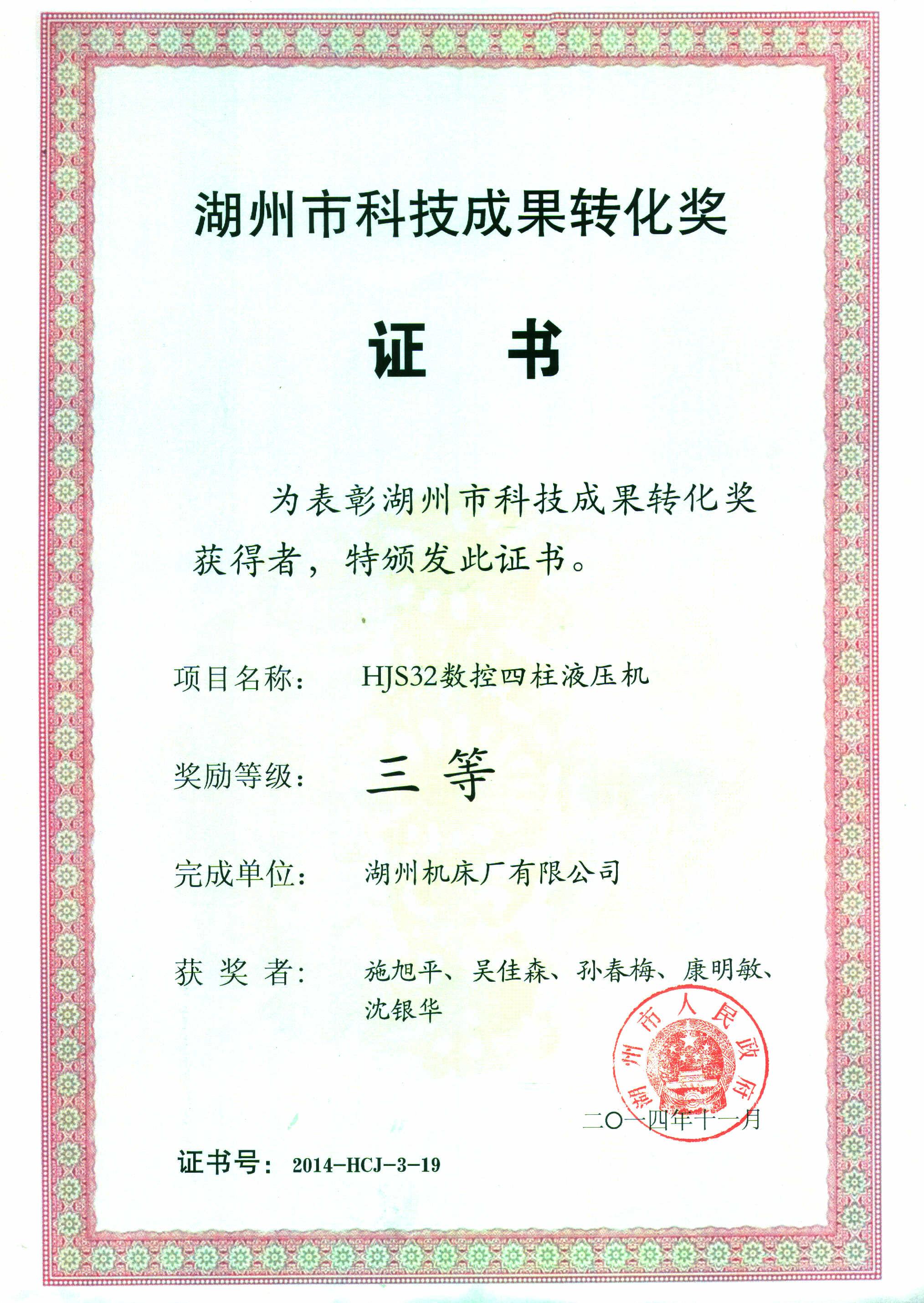 湖州機(jī)床廠有限公司 全國(guó)液壓機(jī)行業(yè)重點(diǎn)骨干企業(yè)