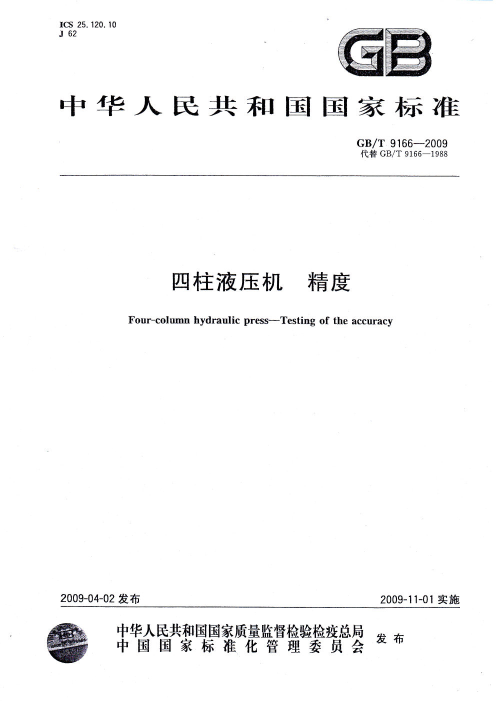 液壓機(jī)國(guó)家標(biāo)準(zhǔn)