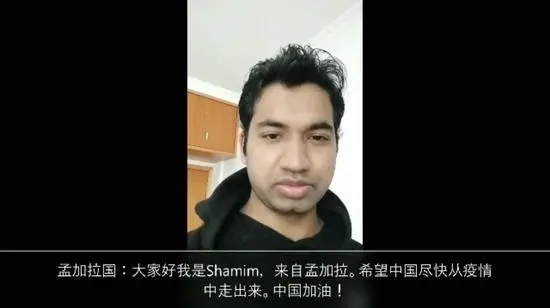 “我們錄制這個視頻主要是想表達世界各地人民對中國和中國人民的愛,全世界人民都深愛著中國和中國人民。”Shamim說,在視頻里,很多朋友因為時間限制,沒有辦法說更多的話,但他們由衷地熱愛中國和中國人民。